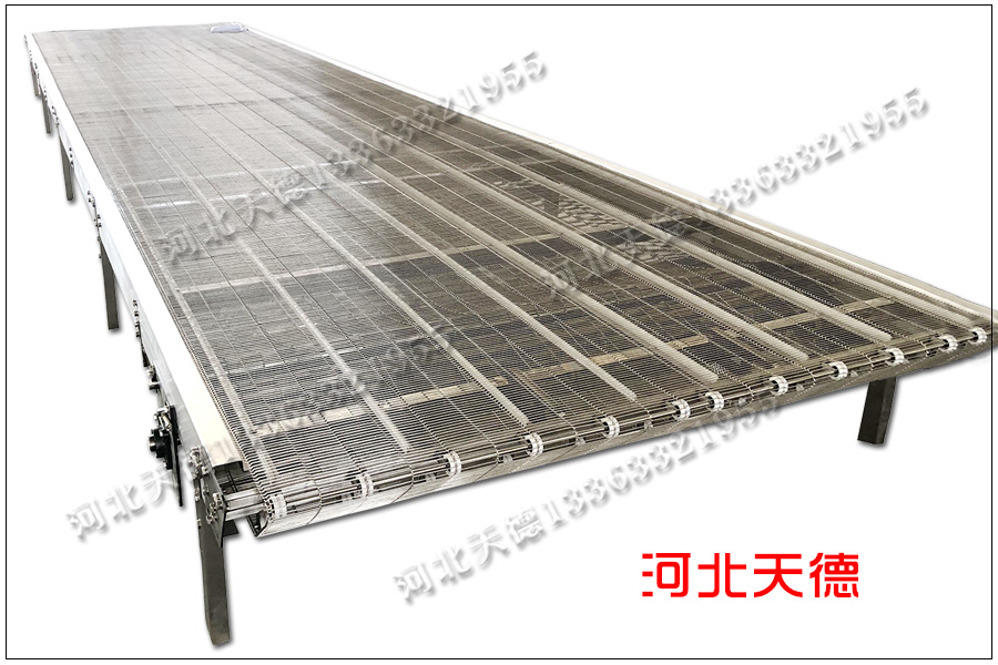 輸送機(jī)輸送面距離地面高度為40公分,乙字網(wǎng)輸送帶寬度為1.9米,分20格.