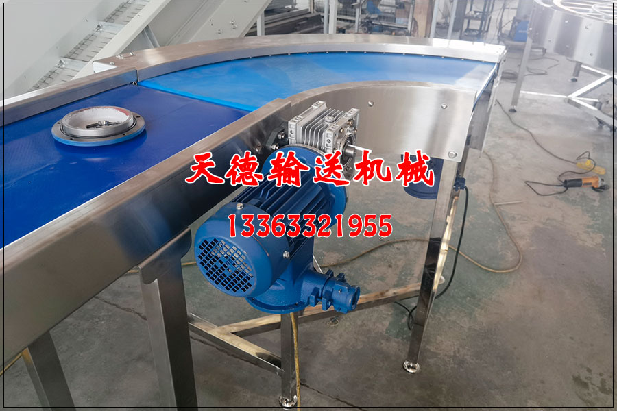 塑料食品罐輸送線轉(zhuǎn)彎皮帶輸送機