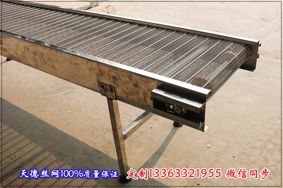 網(wǎng)帶輸送機是皮帶輸送機的產(chǎn)品,完全客服了皮帶機污染的問題,網(wǎng)帶輸送機材質(zhì)可以選擇完全可以符合衛(wèi)生標準,成功的客服了不銹鋼網(wǎng)帶撕裂腐蝕的缺點。 網(wǎng)帶輸送機為大家提供了一種快捷、簡單的輸送方式。網(wǎng)帶輸送機傳動方式系選用鏈輪驅(qū)動,因此不銹鋼網(wǎng)帶輸送機不易蛇行、跑偏,由于不銹鋼網(wǎng)帶非常厚實可以經(jīng)得起切割、重物碰撞,及耐油、耐水等特性的,網(wǎng)帶輸送機防止了各行業(yè)在使用的時候減少維修保養(yǎng)的困擾,在更換不銹鋼網(wǎng)帶上更減少費用。網(wǎng)帶輸送機不會吸附任何雜質(zhì)在不銹鋼輸送帶表面。網(wǎng)帶輸送機穩(wěn)定性和耐化學(xué)性很強,在各行業(yè)都很實用。