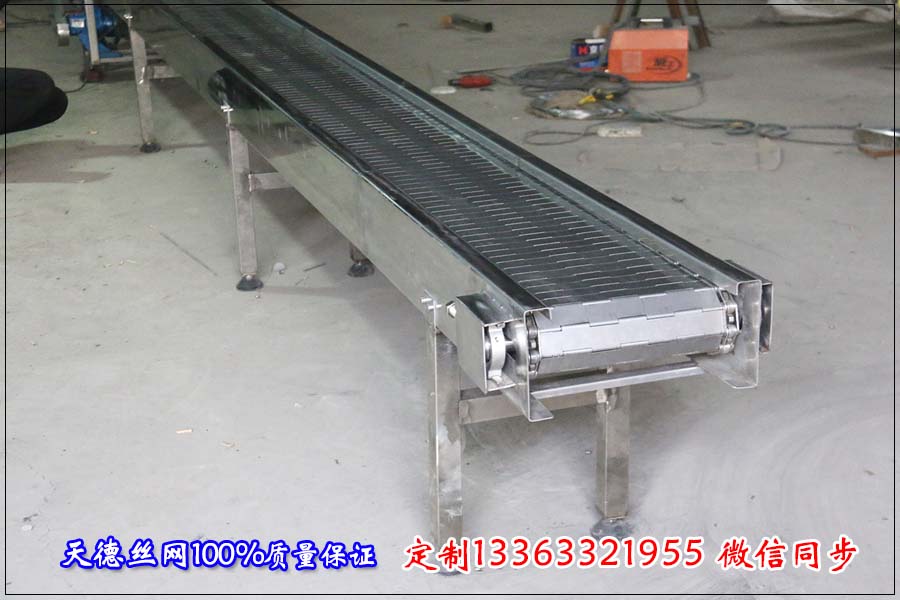 名稱(chēng):鏈板輸送機(jī) 材質(zhì):碳鋼 規(guī)格:長(zhǎng)2.5米,使用寬度200mm 機(jī)身板厚2mm 鏈板:節(jié)距38.1mm 板厚1.5mm 串桿6mm 刮板高20mm 間隔300mm一個(gè) 。