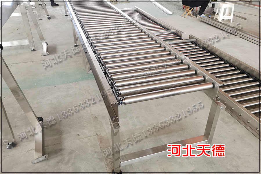 滾筒輸送機(jī)專業(yè)輸送各類箱、包托盤等件貨物的輸送,小件物品、散料或是規(guī)則的物品則需要放在托盤或是周轉(zhuǎn)箱內(nèi)進(jìn)行輸送。能承受較大的沖擊載荷,滾筒線之間易銜 接過(guò)濾,用多條滾筒線以及其他的輸送機(jī)或是專機(jī)進(jìn)行組成復(fù)雜的物流輸送系統(tǒng),完成多方工的工藝需要。同時(shí)也可以采用積放滾筒實(shí)現(xiàn)物料的堆積輸送。滾筒輸送機(jī)有著結(jié)構(gòu)簡(jiǎn)單。滾筒輸送機(jī)主要是由支架、傳動(dòng)滾筒、機(jī)架和驅(qū)動(dòng)部等部分進(jìn)行組成。滾筒輸送機(jī)有著速度快、輸送量大并且運(yùn)轉(zhuǎn)輕快,能夠?qū)崿F(xiàn)多品種共線分流輸送的特點(diǎn)。