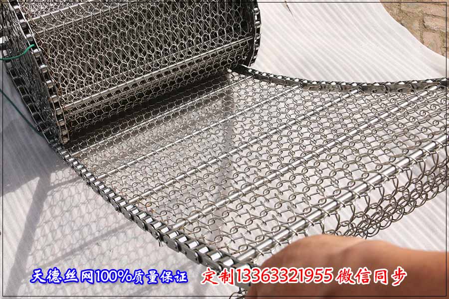 麻花油炸不銹鋼網(wǎng)帶要根據(jù)油炸麻花的大小來選擇,在這種情況下通常采用鏈條輸送帶和鏈板輸送帶的結(jié)構(gòu)形式的輸送帶比較多,如果采用鏈條輸送帶我們要對(duì)鋼絲編織的孔做好選擇,要先看看油炸麻花比較小的體積面積是多少,根據(jù)這個(gè)做網(wǎng)帶的孔,防止在油炸的過程中麻花掉下去,選擇鏈板輸送帶的時(shí)候表面需要打孔用來淋油使用,這個(gè)孔的直徑要小于麻花的直徑,道理是跟網(wǎng)帶編織孔的道理是一個(gè)意思。這兩種輸送網(wǎng)帶都是采用大滾珠輸送鏈條來傳送的。其中的總寬度要根據(jù)輸送機(jī)的寬度來定制。