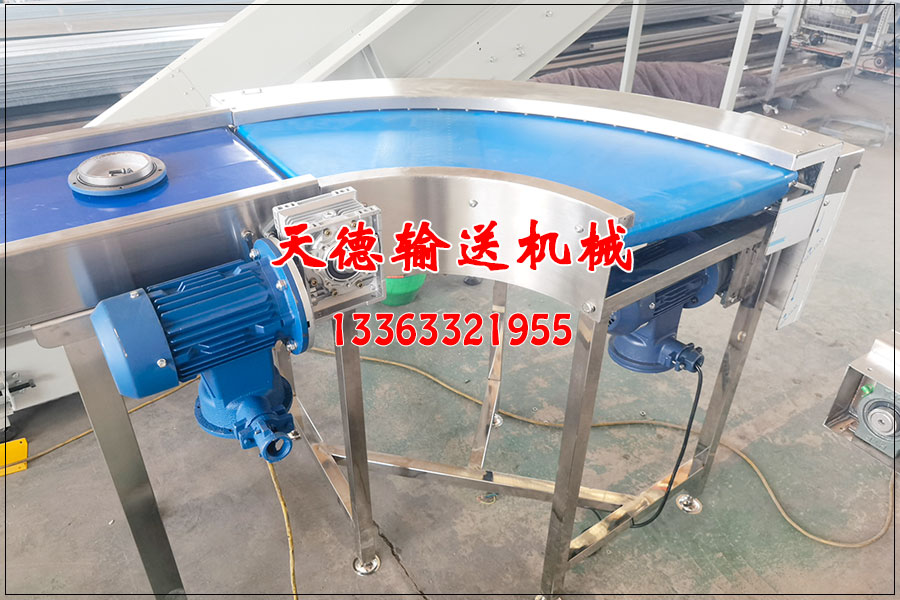 對于轉彎輸送機這種設備分為網帶式與鏈板式。主要應用于食品、罐頭、藥品與飲料等相關生產車間。但是對于這種轉彎輸送機原理是什么樣的呢? 像是這種輸送機它主要的轉彎設計方式有兩種,一種是強制導向轉彎,另一種是自然變向轉彎。像是強制導向的比如說在皮帶式輸送機上,會在變向處設置專門轉彎裝置。 皮帶轉彎機 自然變向的話就是通過力學原理,實現轉彎輸送機的自然彎曲運行。比如說水平彎曲帶式輸送機就是應用了自然變向。通過合適了的設置達到轉彎的目的。