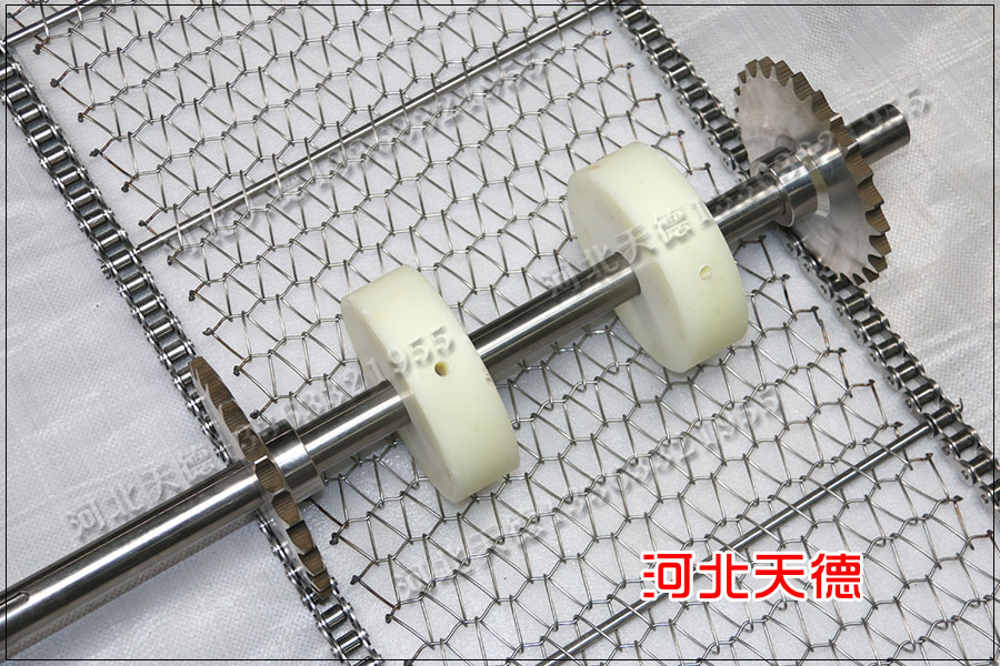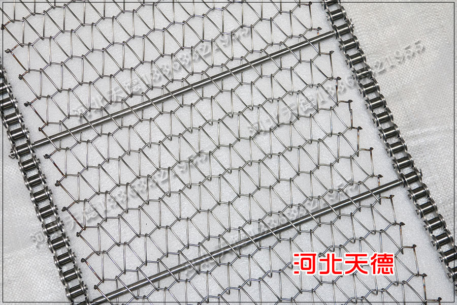 鏈桿的間距為10節(jié)一段,采用1.2毫米的不銹鋼絲編織孔徑為15*20毫米。只要這個孔的大小能夠保證青菜不會漏下去就可以。