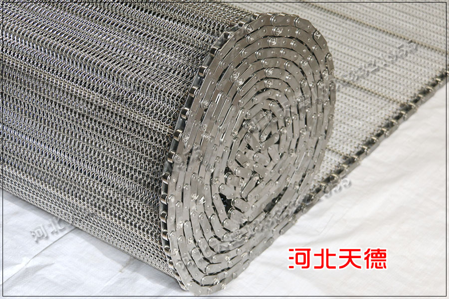 輸送機網(wǎng)帶采用鏈條傳動的網(wǎng)帶通常是鋼絲編織的,鋼絲直徑由1.0-3.0毫米。