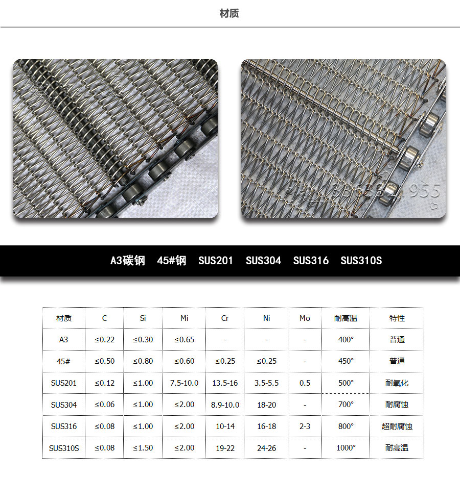 廣泛用于玻璃制品行業(yè)的退火爐網(wǎng)帶、烤花爐網(wǎng)帶等。食品加工行業(yè)、脫水蔬菜、速凍食品單凍機(jī)前處理網(wǎng)帶、鏈網(wǎng)。粉末冶金、金屬熱處理、淬火、燒結(jié)、釬焊、焙燒、光亮、發(fā)黑、軸承、滲碳高溫爐網(wǎng)帶、擋板式網(wǎng)帶、涂裝烘干線輸送網(wǎng)帶、泡沫鎳還原生產(chǎn)線網(wǎng)帶,清洗機(jī)、提升機(jī)、干燥機(jī)、烘干機(jī)、固化爐網(wǎng)帶。